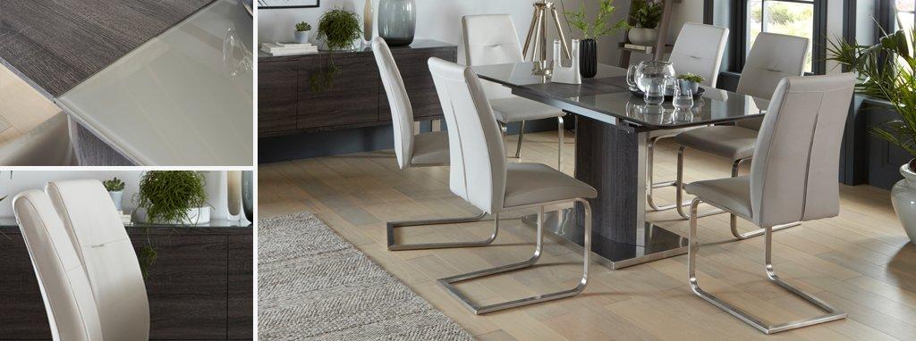 Piatto Fixed Dining Table and 4 Chairs | DFS from images.dfs.co.uk Lyric clearance lhf arm corner sofa, cuddler & x2 footstools. Our range of dining room furniture comes in a variety of materials, shapes and sizes, which help to establish the mood of your dining experience. Choosing dining chairs and kitchen chairs. Dining room tables by ashley furniture homestore. Delivered to room of choice, self assembly required. Crafted from high gloss, glass and metal. Dining table sets are a fast way to make a dining room look perfectly pulled together. Grey marble effect 5 piece medium dining set with randall chairs.