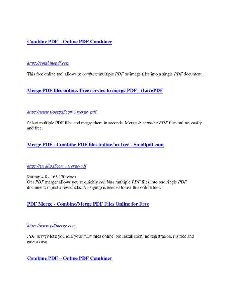 Merge Pdf Combine Pdf Files Online For Free from smallpdf.com It offers free services to compress, convert and edit pdf documents. Maybe you would like to learn more about one of these? We did not find results for: Check spelling or type a new query.