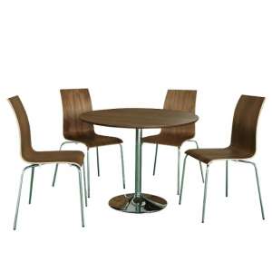 Novara chrome metal 100cm round glass dining table and 4 corona silver dining chairs.